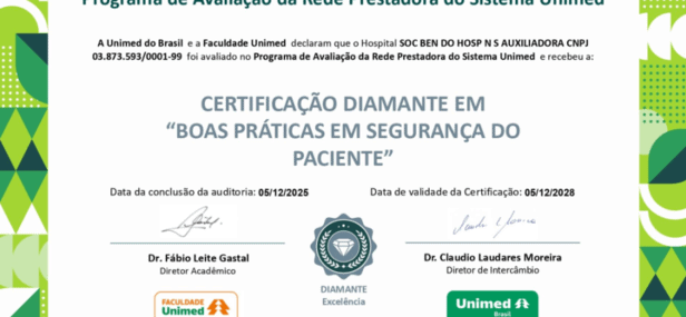 É o nível máximo de reconhecimento concedido pela Unimed do Brasil e Faculdade Unimed a hospitais que demonstram excelência plena na aplicação e monitoramento de práticas de segurança do paciente.